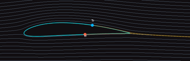 Speaking of visual updates—there are more flow vis options, too! Streamlines provide a static snapshot of the airflow, and there’s even an option for animated smoke so you can see how particles would move around the airfoil. Depending on the settings you can see some of the particles slow down significantly as they encounter the boundary later which really is just plain neat.